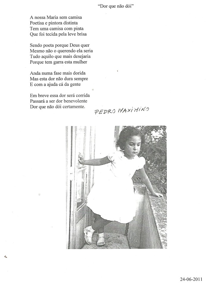 Cara amiga, Não sei fazer versos, não posso dedicar-lhe nenhum. Apenas posso acompanhar a sua poesia e as suas dores.